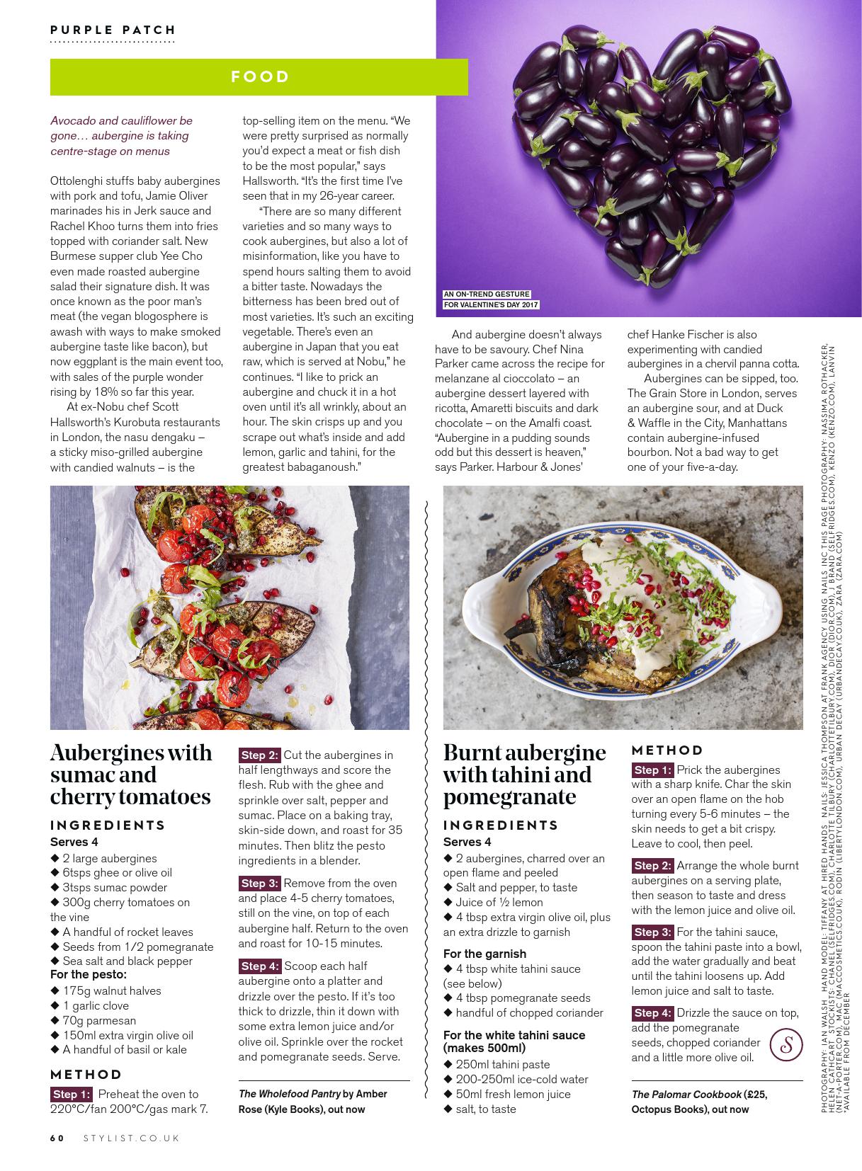But it’s not just the digital sphere that’s overrun with the fruit. “Aubergine has taken over from the avocado as the new superfood on the block,” says nutritionist Frida Harju. “It is rich in potassium, magnesium and vitamins K and C. Its skin contains nasunin, which has anti-ageing properties. I think it’s so popular right now because Mediterranean diets have been found to prolong life and help fight disease, and aubergines are seen throughout Mediterranean cuisine.”