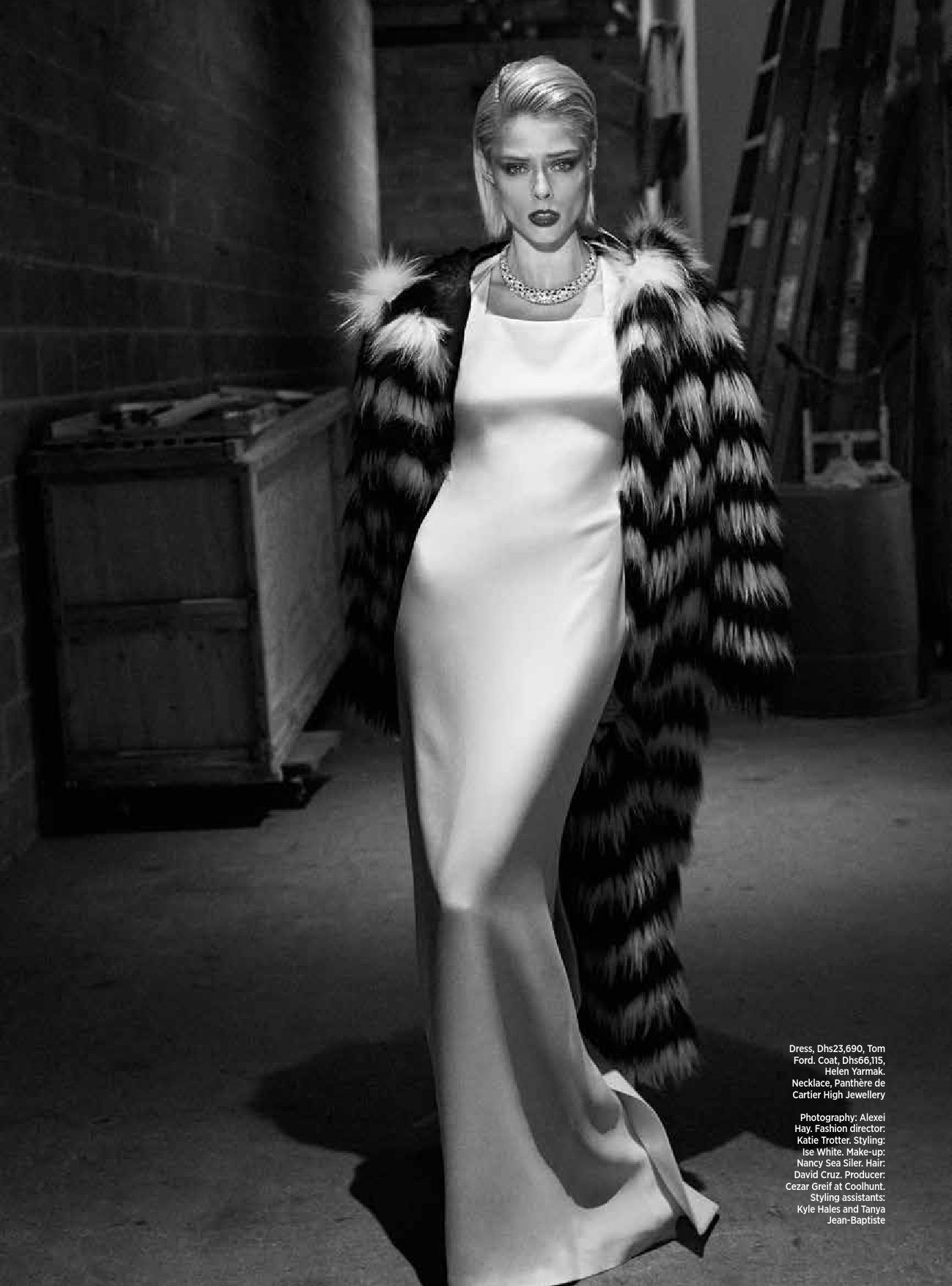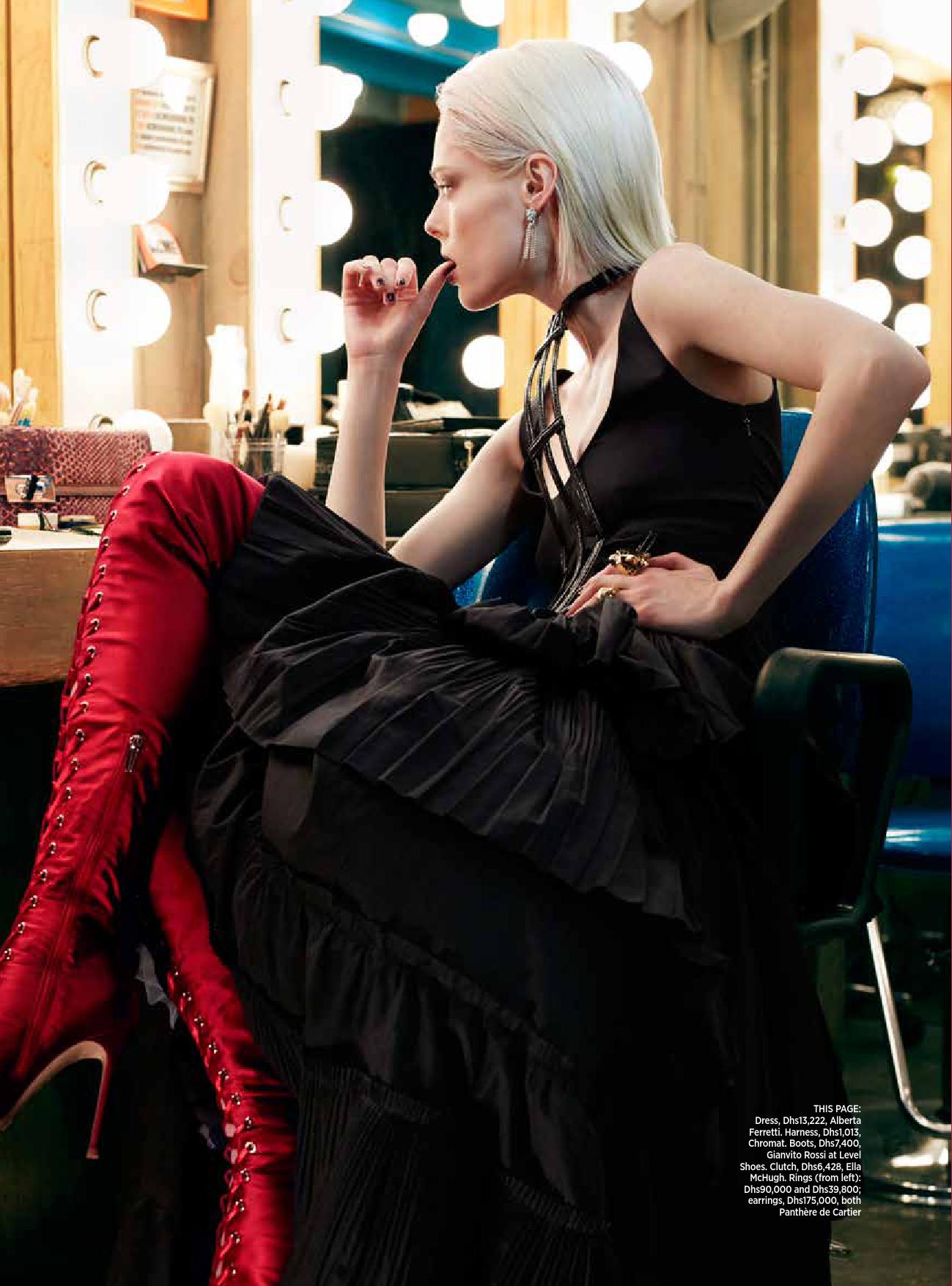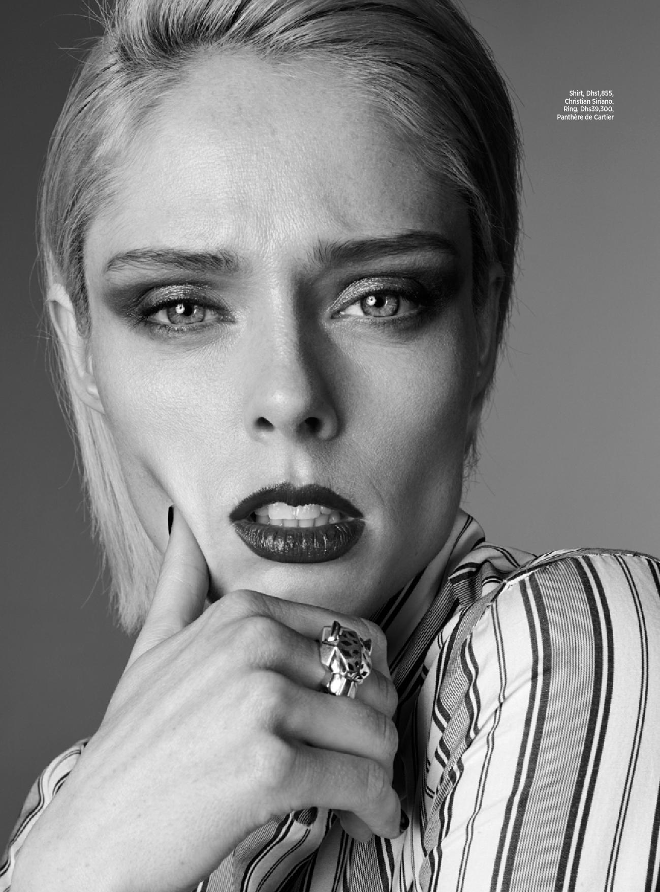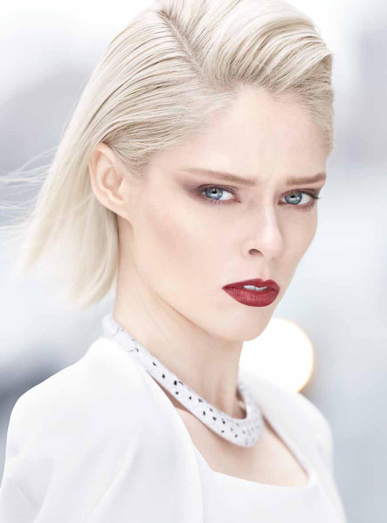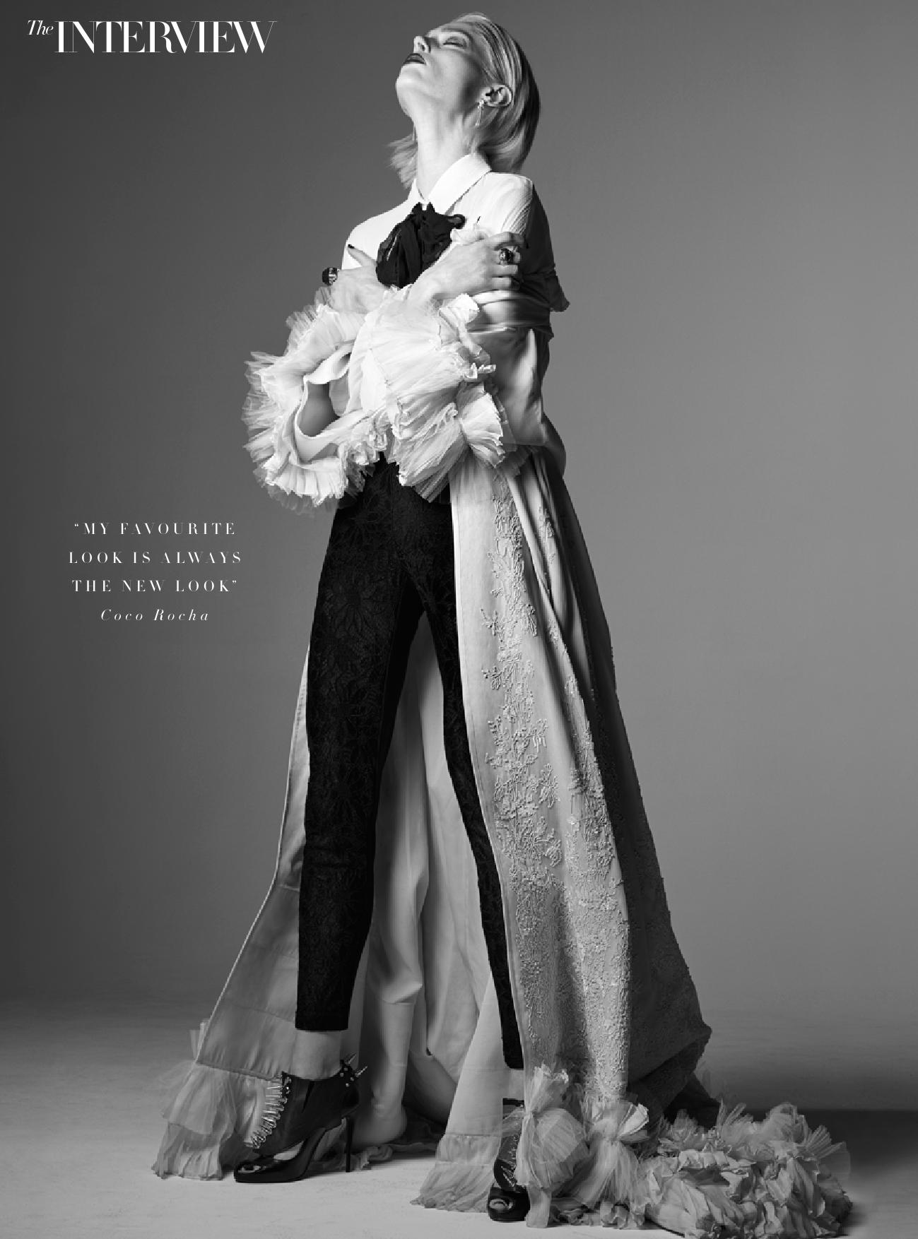 Known for her ability to pull over 50 different poses in 30 seconds – Tyra Banks called her ‘The Queen of Posing’ – Rocha has also had more hairstyles than an undercover spy. “I’ve done red, I’ve done black, I’ve gone long, I’ve been short,” she says. “I play a lot of different characters, that’s the kind of model I am. If they’re looking for a David Bowie, I’m the girl…if they want someone who’s going to play an actress without speaking, that’s me.” Today she’s sporting an asymmetrical platinum blonde crop, the work of Nabil Harlow, Balmain’s Master Hair Designer, but Coco being Coco, she is already thinking about her next ‘do. “I’ve been blonde for six months now and it’s been fun but I know in a few weeks’ time I’ll be itching for a new look. My favourite look is always the new look.”