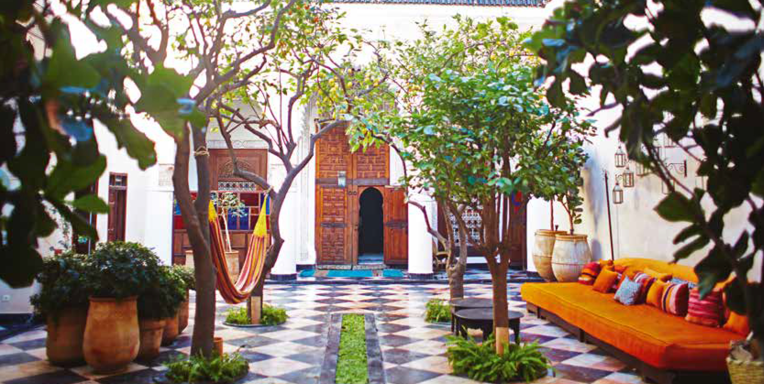 Stoop through a tiny wooden door, down a dusty backstreet just off the medina, and you find yourself among marble fountains and lemon trees in the courtyards of El Fenn. Every afternoon, this 19th-century riad-turned-hotel serves up lemon cake and mint tea for guests, while resident tortoises wander around the hammocks in hope of a nibble. Yoga mats, watercolour sets and pine-scented log fires in the rooms are a heavenly touch.